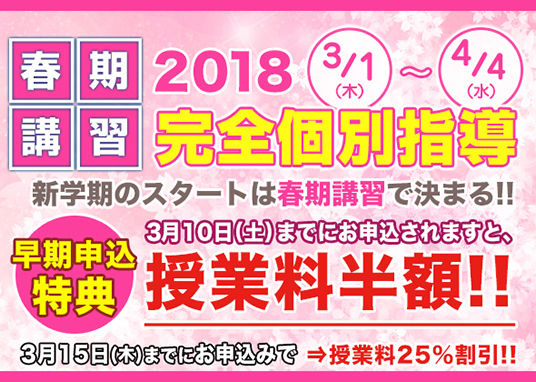 ■3月10日(土)までにお申込されますと、授業料が半額になります。